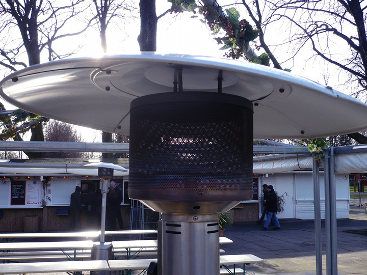 Ein Heizpilz ist ein Gasbrenner der meistens aus Metall gefertigt wird. Dadurch hat er eine glänzende Oberfläche und ist schon auf der Terrasse oder im Garten anzusehen. Deswegen wird der Heizpilz oft auch als Terrassenstrahler bezeichnet. Es gibt den Heizpilz aber auch aus anderen Materialien was aber natürlich nur für den Sockel und Zierlemente gilt, da der Brennkopf aus Metall hergestellt sein muss. Der Name "Heizpilz" hat der Heizpilz seinem Aussehen zu verdanken. Dadurch das die Gasflasche unten im Sockel des Heizpilzes aufbewahrt wird, ist von der Form her unten ein runder Zylinder. Das Gas wird aus der Flasche durch einen Schlauch nach oben zum Brennkopf geleitet. Deswegen ist das Element zwischen Heizkopf und Gasflasche eine recht dünne längliche Stange die oben im Brennkopf des Heizpilzes mündet. Dadurch hat der Heizpilz die Form eines Pilzes und daher eben auch der Name Heizpilz. Es werden immer mehr Heizpilze verkauft da sie gerade im Winter sehr beliebt sind. Menschen frieren nunmal nicht gerne und gegen das Frieren ist ein Heizpilz das perfekte Mittel ! Die Abgase des verbrannten Gases ziehen automatisch nach oben und werden bei leichtem Wind noch schneller abtransportiert. So beeinträchtigt der Heizpilz die Sauerstoffzufuhr nicht. Der Heizpilz verbrennt aber Sauerstoff und deshalb und wegen der Brandgefahr darf er unter keinen Umständen im Innenraum eingesetzt werden. Auch unter halb offenen Zelten sollte man acht geben, da der Heizpilz von oben sehr heiß wird und die Plane über ihm deswegen anfangen kann zu Brennen oder zu schmilzen.